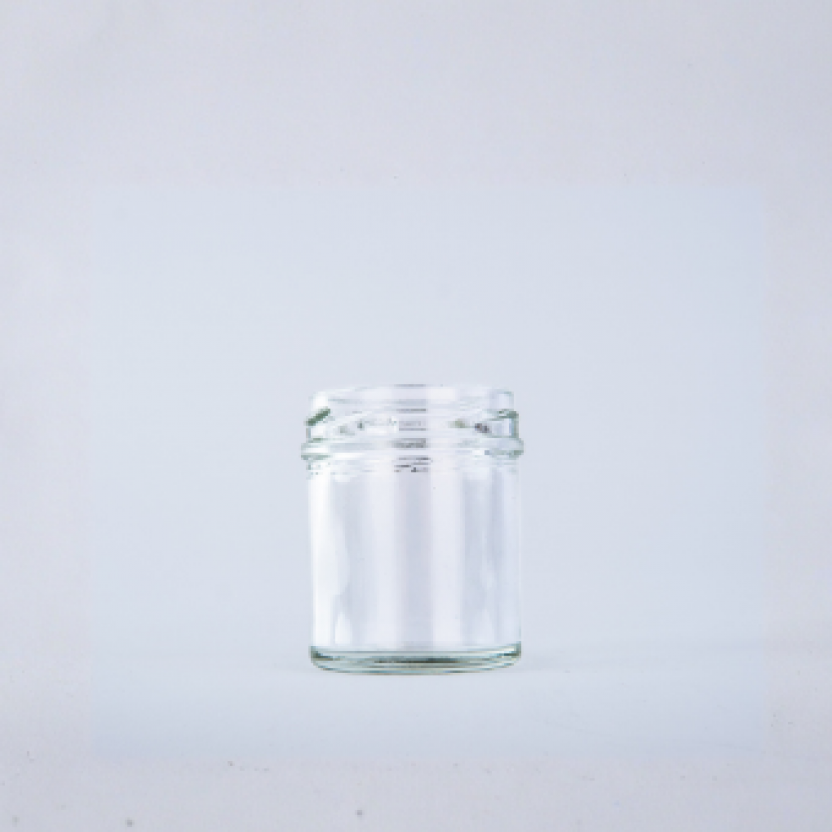Tarro de vidrio con capacidad de 1.2 OZ tipo twist off.